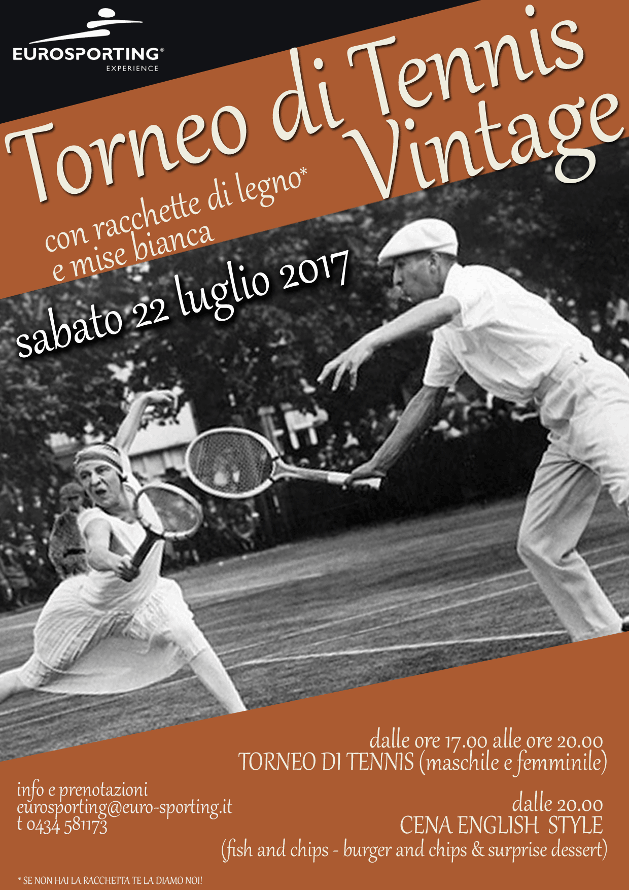Sabato 22 Luglio 2017: Torneo di tennis vintage all'Eurosporting e cena English Style